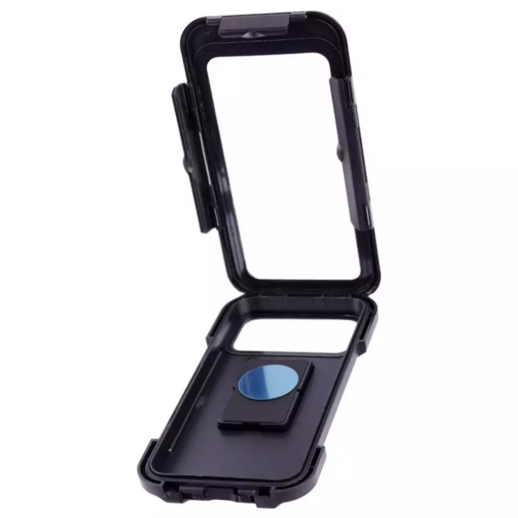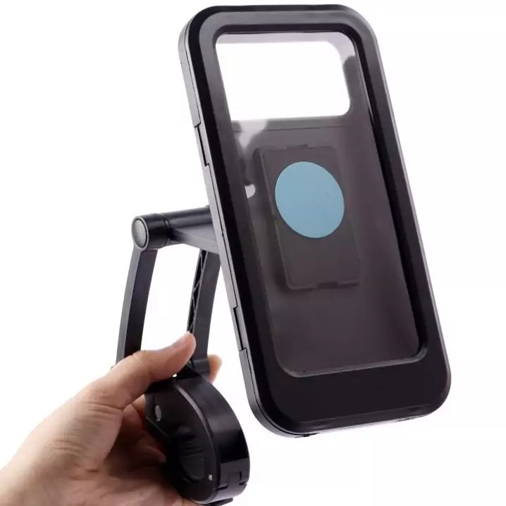 دارای نگهدارنده در فرم قاب برای نگهداری گوشی موبایل با مقاومت در برابر فشار و ضربه اتصال گوشی داخل قاب هولدر از طریق آهنربای داخلی، با امکان باز و بستن آسان قاب حداکثر باز شدن دهانه برابر 28 میلی متر و حداقل باز شدن دهانه برابر 22 میلی متر اتصال ایمن به فرمان انواع دوچرخه و موتور با قابلیت چرخش 360 درجه ای هولدر امکان مشاهده گوشی موبایل درون قاب هولدر با وجود پوشش شفاف رویی مقاوم در برابر نفوذ آب برای استفاده در شرایط جوی نامساعد و بارانی
