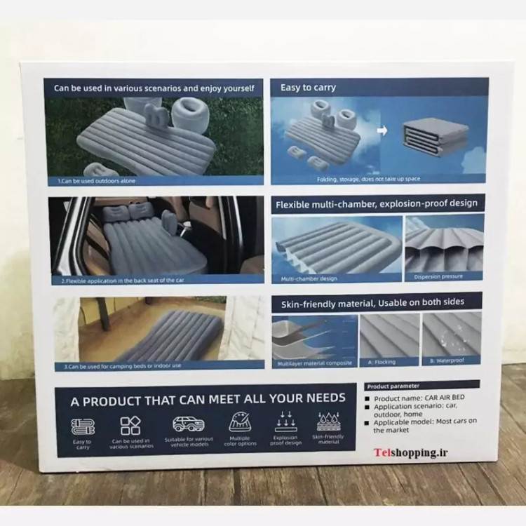 تشک بادی خودرو از برندsqueez مدل car air bed b03 تشک بادی داخل ماشین مدل B01 با وزن 500 گرم و ابعاد 136 × 88 × 11 سانتیمتر، گزینهای مناسب برای سفرهای جادهای و کمپینگ است. این تشک با پمپ هوا، دو بالش و دو زیرتشکی عرضه میشود و در رنگهای مشکی، طوسی و کرم موجود است. طراحی جمعوجور و قابلیت حمل آسان آن، تجربه خوابی راحت را در هر مکانی فراهم میکند. تشک بادی داخل ماشین مدل B03 همراه با پمپ تشک بادی داخل ماشین مدل B03 با ابعاد 136 در 88 در 11 سانتیمتر، گزینهای مناسب برای استراحت در خودروها، کاروانها و کمپرها است. وزن 500 گرمی این تشک، آن را بسیار سبک و قابل حمل کرده است. جنس مقاوم و بادوام این تشک از مواد باکیفیت ساخته شده که دوام بالایی در شرایط مختلف دارد. پمپ هوای همراه، امکان باد کردن سریع و آسان تشک را فراهم میکند.راحتی با بالشها و زیرتشکیها این تشک به همراه دو عدد بالش با ابعاد 38 در 26 سانتیمتر و دو عدد زیرتشکی 31 در 38 سانتیمتر عرضه میشود. این اقلام به شما کمک میکنند تا خواب راحتتری در سفر داشته باشید. حمل آسان و طراحی جمعوجور تشک B03 بهراحتی جمع میشود و فضای کمی اشغال میکند. وزن سبک و طراحی جمعوجور، حمل آن را آسان کرده و برای استفاده در سفرهای جادهای بسیار مناسب است. رنگهای متنوع این محصول در سه رنگ مشکی، طوسی و کرم عرضه میشود تا بتوانید بر اساس سلیقه خود، رنگ مناسب را انتخاب کنید. ایدهآل برای سفر و کمپینگ تشک بادی B03 همراه شما در سفرهای طولانی، کمپینگ و استراحتهای کوتاه است و در هر مکانی خوابی راحت برای شما فراهم میکند.