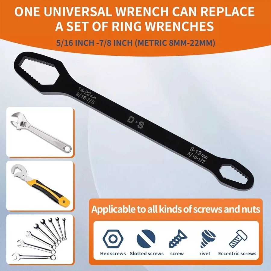 آچار دو سر رینگی همه کاره 8-22 مشکل بیشتر عاشقان ابزار و تمام فنی کاران را حل کرده است ، همیشه همراه داشتن یک کیف ابزار کامل بسیار دشوار و سنگین هست و در بیشتر مواقع آچار ها بیشترین وزن یک کیف ابزار به خود اختصاص می دهند ، آچار همه کاره دوسر رینگی 8-22 با دارا بودن 14 سایز از مهره بهترین جایزین ست های سنگین آچار های رینگی می باشند. با خرید آچار همه کاره دوسر رینگی دیگر از ناقص شدن آچارهای خود در زمان جابجایی کیف ابزار آسوه هستید، نیازی به حمل تعداد زیاد آچار ندارید و تنها یک آچار برای شما کفایت می کند. آلیاژ آچار همه کاره دوسر رینگی 8-22 از بالاترین کیفیت فولاد ساخته شده تا در برابر رطوبت و سایش مقاومت لازمه را داشته باشد. بهترین گزینه برای داخل ماشین و کسانی که کمپ می کنند یا دوچرخه سوارانی که فضای کمی برای حمل کیف ابزار های بزگ و پر سروصدا ندارند می باشد .