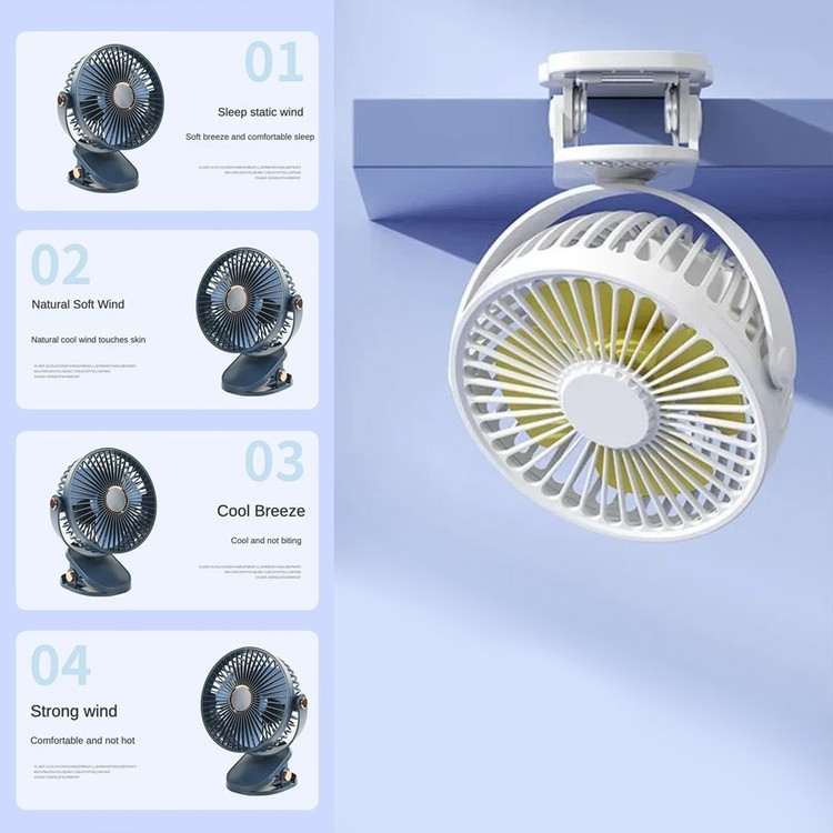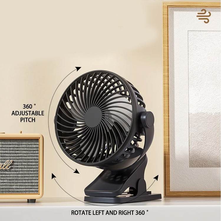 این پنکه می تواند گزینه مناسبی برای زمانی باشد که شما به برق دسترسی ندارید و یا برق رفته است. باطری این پنکه شارژ می شود و می توانید از آن بدون نیاز به اتصال مداوم به برق استفاده کنید. قدرت پرتاب هوا توسط پره های این پنکه با توجه به ساخت متفاوت بسیار بالا است و گردش هوای مناسب و قوی تری ایجاد می کند.این پنکه قدرت انتخاب سه سرعت را به فرد می دهد که با توجه به شرایط فرد انتخاب می کند کدام سرعت را تنظیم کرده و استفاده کند.دارای گیره اتصال برای متصل نمودن به میز یا دستگیره و یا دسته صندلی یا داخل ماشیناین پنکه از سایز خوبی برخوردار است که می توان آن را داخل کیف قرار داده و با خود حمل کنید.یکی دیگر از ویژگی های این پنکه حالت چرخش 360 درجه آن است که با توجه به نیازتان می توانید جهت آن را تنظیم کنید. این پنکه دارای LED در داخل پنکه می باشد که هنگام کار کردن زیبایی خاصی به محصول می بخشد.