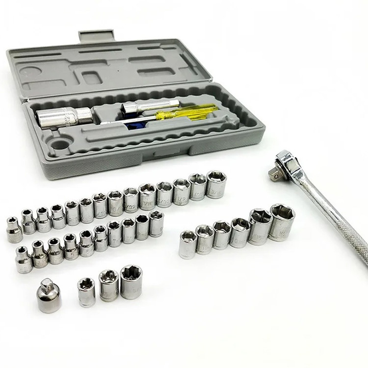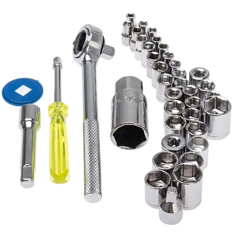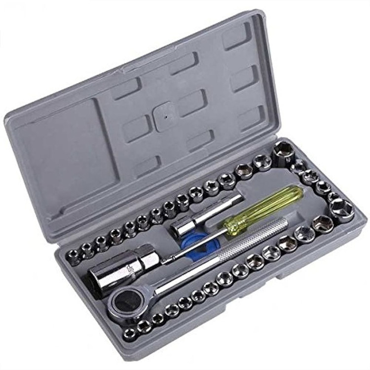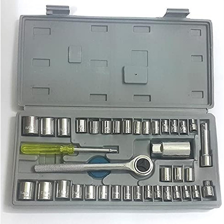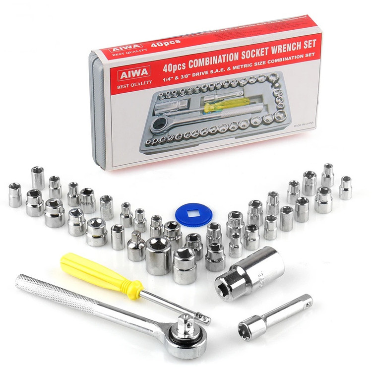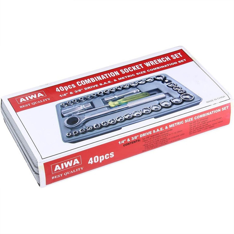 این مجموعه ست کامل ابزار و آچار بکس است که یک جعبه کامل از ابزار و آچار های مختلف برای استفاده انواع خودرو سواری و مجموعه ای ارزان قیمت جهت تعمیرات در خانه و خودرو میباشد. این بکس شامل سری کامل ریز تا درشت آچار بکس 40 تکه است. این بکس دارای تبدیل بکس های 1/4 به 3/8 و اچار شمع ماشین، کمکی بکس ومناسب برای خودرو منزل موتورسیکلت میباشد. مجموعه 40 عددی آچار بکس AIWA یک ست بی نظیر از انواع مختلف آچار بکس و متعلقات آن می باشد که تمامی این اقلام ساخته شده از استیل کروم وانادیوم با روکش صیقلی و آینه ای است.به کار گیری این آلیاژ در ساخت ابزار، باعث بالا رفتن مقاومت آن ها در برابر ضربه، حرارت و فشار خواهد شد و از زنگ زدگی هم جلوگیری می کند.