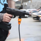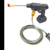 جعبه نگهدارنده 5متر شلنگ مخزن مایع کارواش دو سری کوپلینگ جهت تنظیم نوع پاشش که برروی لوله فلزی نصب می گردد و یک لوله با قابلیت تنظیم پاشش آدابتور جهت شارژ باطری یک باطری پرقدرت48ولتی