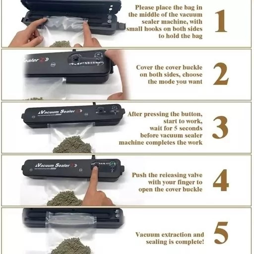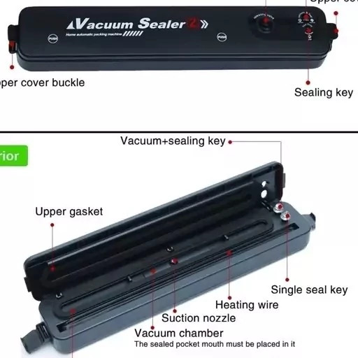 این دستگاه دو کاره است : 1 وکیوم کردن خلا 2 پرس کردن دارای کیسه مخصوص وکیوم دستگاه پلمپ کیسه فریزر وکیومی vacuum sealer ابزار مخصوص وکیوم کردن انواع کیسه های پلاستیک وکیومی و از نایلون فریزر برای پرس کردن کارکرد بسیار ساده و آسان دستگاه وکیوم و دوخت پلاستیک خانگی وکیوم دستگاه وکیوم و پرس با کارکرد بسیار آسان و سریع مناسب بسته بندی انواع مواد غذایی و سبزیجات و …
