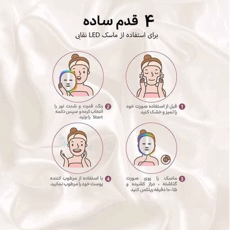 - دارای چندین رنگ نور درمانی برای رفع مشکلات مختلف پوستی