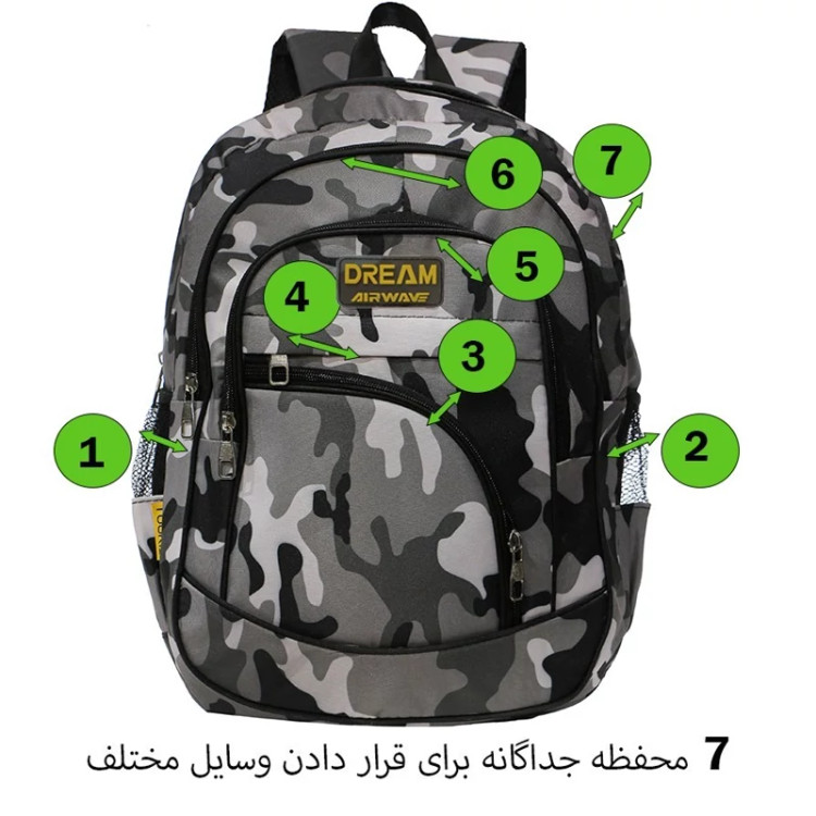 مشخصات فنی محصول: ** مشخصات ** ابعاد: 40x30x16 سانتیمتر وزن: 400 گرم جنس: پلی استر تعداد جیب خارجی: 4 تعداد جیب داخلی: 1 تعداد دسته: دو