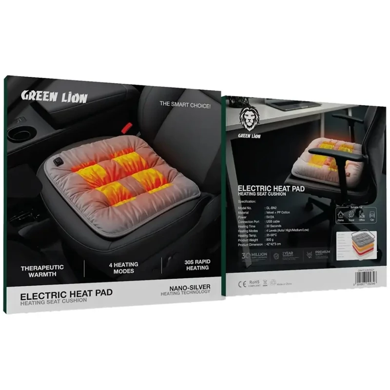 پد گرمکن برقی Green Lion Electric Heat Pad Heating Seat Cushion – طوسی یک نشیمنگاه حرارتی درمانی و بسیار آرامبخش است که با ترکیبی از پارچه مخملی (Velvet) و الیاف PP Cotton، گرمای ملایم و توزیع حرارتی یکنواختی را فراهم میکند. این پد علاوه بر راحتی لوکس، عملکرد گرمایشی بسیار مناسبی دارد و میتواند حرارت را بهصورت ایمن و یکنواخت منتشر کند. این گرمکن دارای 4 حالت حرارتی (خودکار، زیاد، متوسط و کم) است و تنها در 30 ثانیه به محدوده دمای 35 تا 58 درجه سانتیگراد میرسد. تغذیه دستگاه از طریق کابل USB-C با توان 5V/2A انجام میشود که سبب میشود به راحتی بتوانید آن را در خانه، ماشین یا محل کار استفاده کنید. بهکارگیری فناوری گرمایش نانو نقره (Nano-Silver) باعث میشود گرمای تولیدشده بسیار ایمن، پایدار و بدون هیچگونه خطر تشعشعی باشد. فوم با چگالی بالا راحتی بیشتری فراهم کرده و پارچه تنفسی آن نیز مانع از تعریق و ایجاد گرمای آزاردهنده میشود. این پد گرمکن با وزن سبک و قابلیت حمل آسان، گزینهای عالی برای سفر است. همچنین روکش آن قابل شستشو بوده و نگهداری از آن را بسیار ساده میکند. اگر به دنبال یک پد گرمکن مطمئن و آرامبخش برای خانه، خودرو یا سفر هستید، این محصول همراه همیشگی شما خواهد بود.