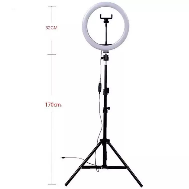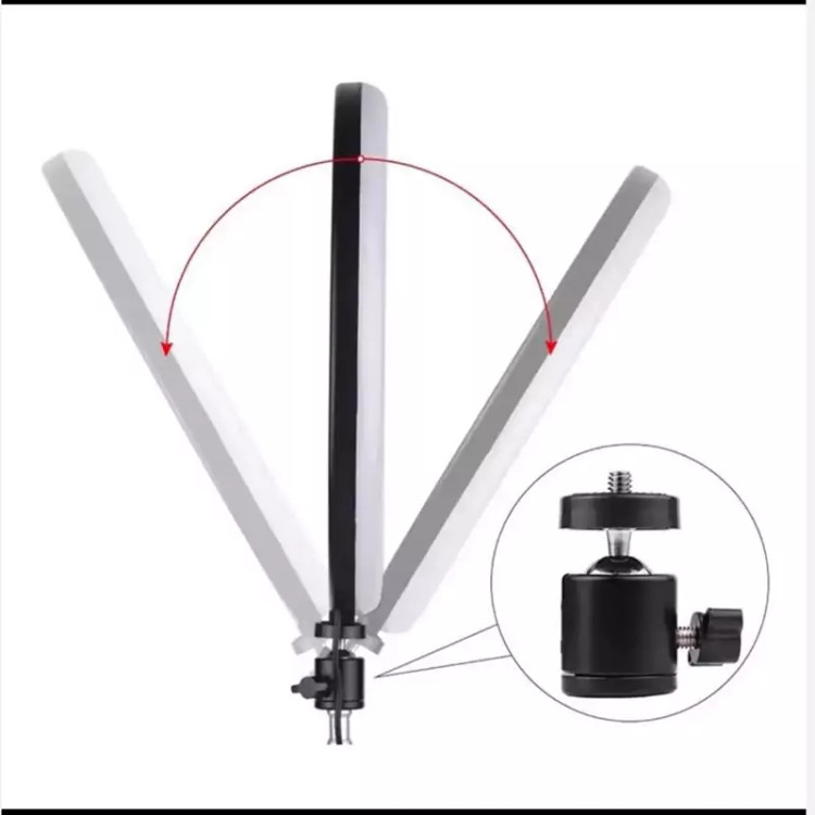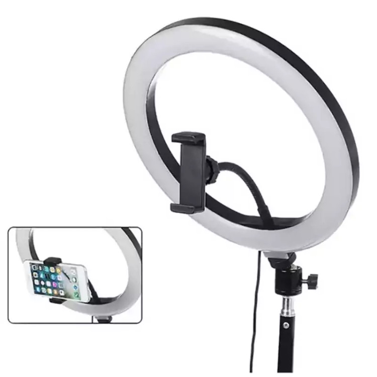 جنس بدنه از پلاستیک ABS و فلز مقاوم در برابر فشار و ضربه، به همراه یک عدد استند و هولدر گوشی موبایل قطر حلقه 36 سانتی متر (14 اینچ)، مجهز به لامپ LED با نوردهی سفید، ترکیبی (ملایم) و گرم حالت نوردهی ثابت با زاویه 180 درجه، محدوده دمای رنگ 2700 الی 6500 کلوین دارای کنترل سیمی به منظور روشن و خاموش کردن، مدیریت میزان نوردهی و تغییر رنگ نور مجهز به رابط USB سیمی به منظور اتصال به منبع تغذیه، موفق به دریافت استانداردهای ایمنی و سلامت محصول شامل CE ،FCC و RoHS سه پایه تاشو به اندازه 60 سانتیمتر و باز شوندگی تا حداکثر حدود 2متر جنس سه پایه فلزی . رنگ مشکی مناسب تولید محتوا