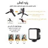 + موارد بیشترکیت فیلمبرداری و گیمبال بسیار کاربردی و کامل دارای سهپایه، گیره تلفن نور قابل تنظیم و میکروفون قدرت لامپ: 5 وات جنس محصول از ABS بادوام و مقاوم مهره لامپ 49 عددی نور با دمای رنگ 6000K و توان خروجی 5 وات سه پایه قابل تنظیم محدوده گیره نگهدارنده تلفن حدود 6.5-10 سانت پاسخ فرکانسی: 50 هرتز تا 16 کیلوهرتز افزایش حساسیت + 20db2db سطح نویز: 24dba حداکثر سطح فشار صدا: 130dB امپدانس خروجی: 200Ω30% کانال: مونو دمای رنگ: 6500k (±200K) عمر باتری: 1.5 ساعت با قدرت 6500k100٪